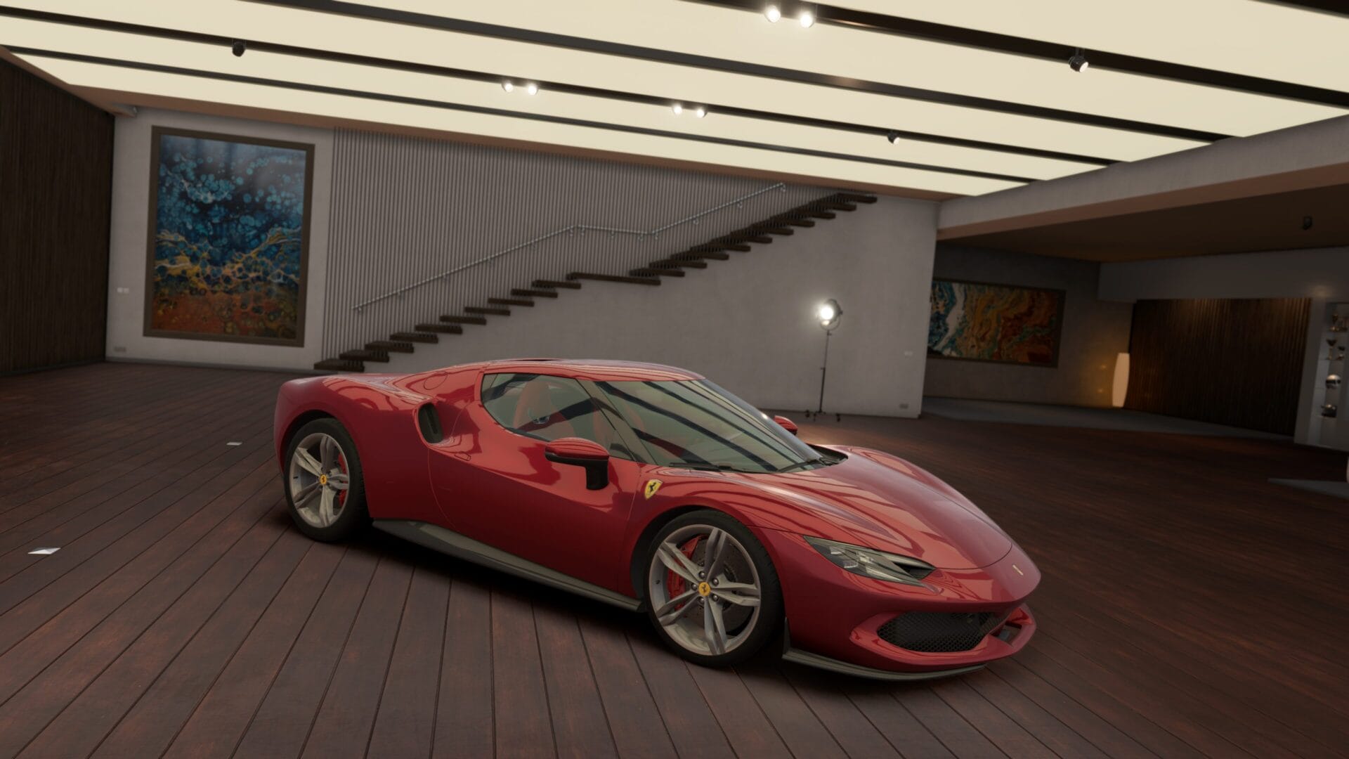 Terwijl u uw auto bewondert, kunt u nu in de "Scène-optie" kiezen tussen Woonkamer en EVO Garage om van uw collectie te genieten in een geheel nieuwe omgeving.